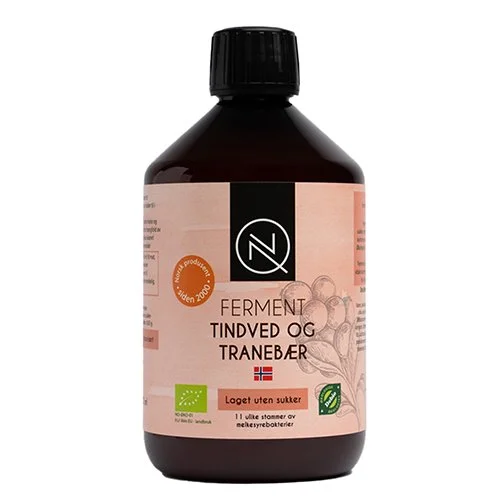 Ferment Tindved & Tranebær er spesielt for kvinner - fermentert drikk med antioksidanter fra bær. Unik sammensetning gir deg en fordøyelsesfremmende drikk med økologiske bær som er melkesyregjæret med godt dokumenterte og vitale stammer av tarmflorabakterier. Blåbær, tindved og tranebær er alle gode kilder til antioksidanter som vi trenger for å opprettholde god helse og velvære. Blåbær, tindved og tranebær er godt kjente næringskilder i det nordiske kostholdet.
